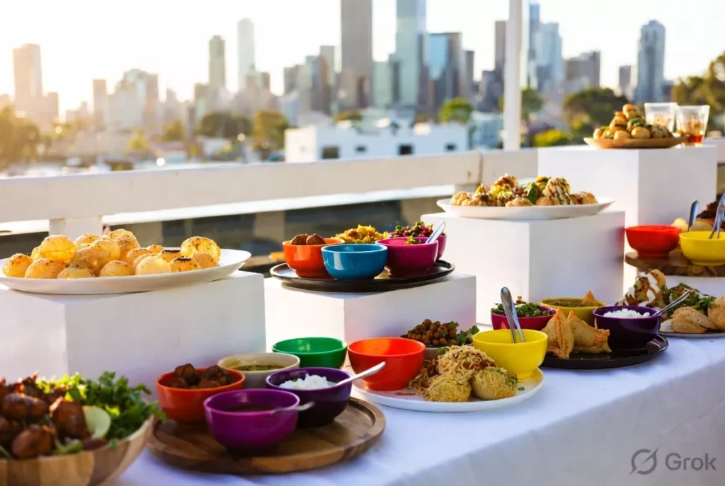 Chaat  pani puri, dahi puri, bhel puri, and samosa chaat  is entirely plant-based by tradition and one of the most universally loved food experiences at any Indian event. A live chaat station at arrival is one of the highest-energy additions to any plant-based Indian catering Melbourne 2026 event. It requires no meat substitution, works for most dietary requirements, and delivers an experience meat-eating guests remember just as vividly as those who eat plant-based by preference.